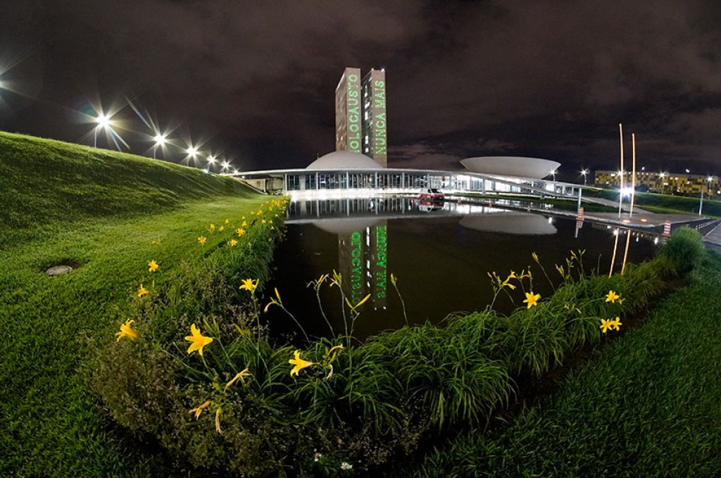 Nesta quarta-feira (23), uma projeção com a frase “Holocausto Nunca Mais” iluminará a fachada do Congresso Nacional, em memória ao Iom HaShoá VehaGvurá (Dia do Holocausto e