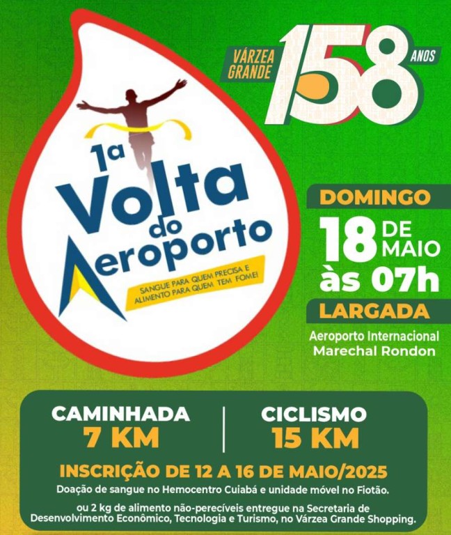 A ação inédita será realizada no sábado, 18 de maio, às 7h da manhã, com largada em frente ao Aeroporto Internacional Marechal Rondon. As inscrições