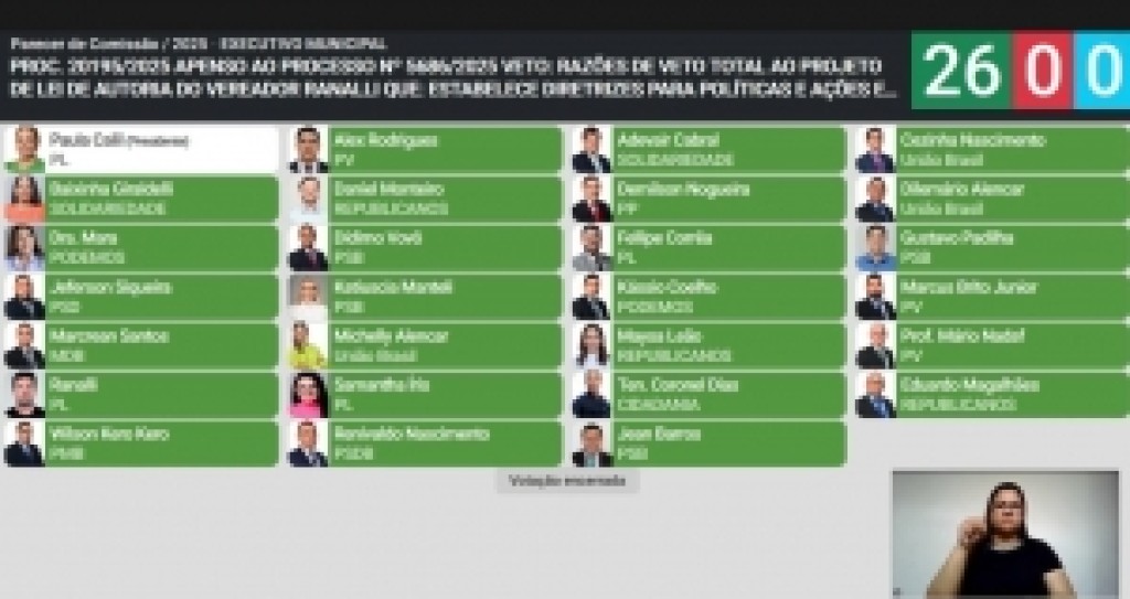 Antoniel Pontes – Assessoria do vereador Rafael Ranalli A Câmara de Cuiabá derrubou, nesta quinta-feira (21), por 26 votos, o veto total do Executivo ao