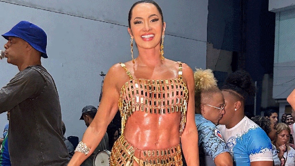No primeiro ensaio aberto da Acadêmicos de Niterói, na noite da última quinta-feira (9), a rainha de bateria Vanessa Rangeli chamou atenção com um look