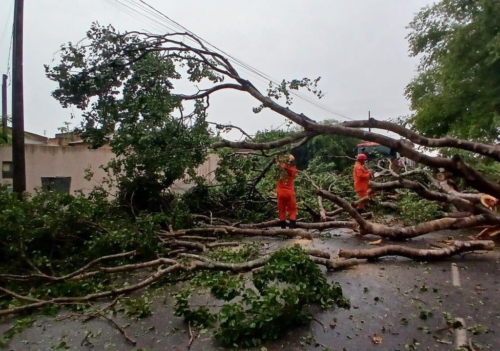 O Corpo de Bombeiros Militar de Mato Grosso (CBMMT) atuou, nesta segunda-feira (3.11), em três ocorrências de queda de árvores que foram registradas após uma