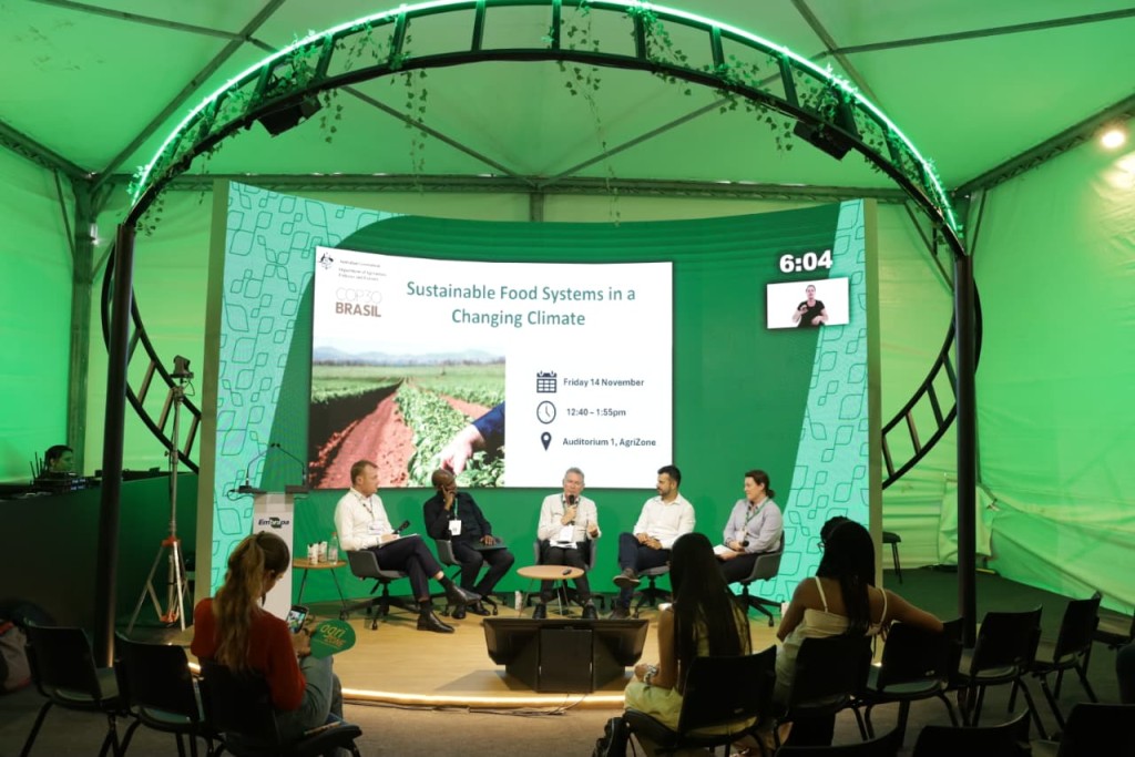 O painel “Sustainable Food Systems in a Changing Climate”, realizado nesta sexta-feira (14), na AgriZone, durante a COP 30, reuniu especialistas da Austrália, Canadá, África