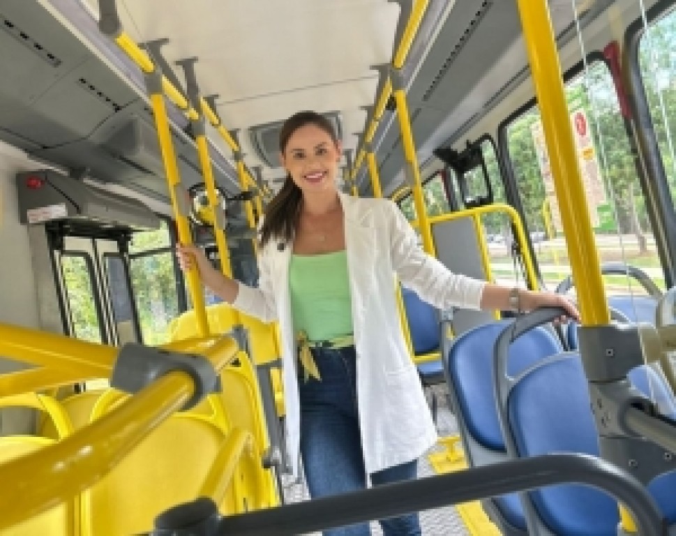 Débora Inácio | Assessoria da vereadora Michelly Alencar A vereadora por Cuiabá, Michelly Alencar, participou nesta sexta-feira (6) da entrega de 41 novos ônibus que