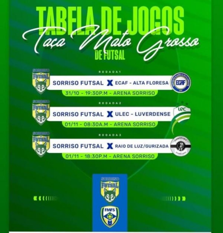 A Taça Mato Grosso é considerada a principal competição estadual da modalidade e serve como vitrine para novos talentos, além de classificar as equipes para a Taça Brasil de Futsal. O evento conta com o apoio da Prefeitura de Sorriso, por meio da Secretaria Municipal de Esporte, Lazer e Juventude.
