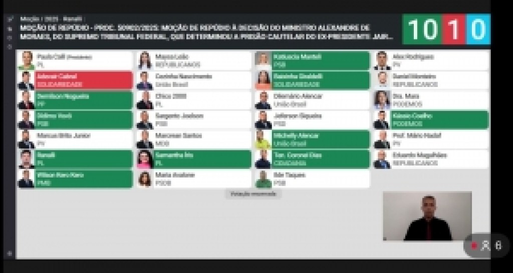 Com 13 votos favoráveis, a Câmara Municipal de Cuiabá aprovou nesta terça-feira (2) a moção de repúdio, apresentada pelo vereador Rafael Ranalli (PL), contra a decisão do ministro Alexandre de Moraes, do Supremo Tribunal Federal, que converteu em prisão preventiva a custódia do ex-presidente Jair Messias Bolsonaro.