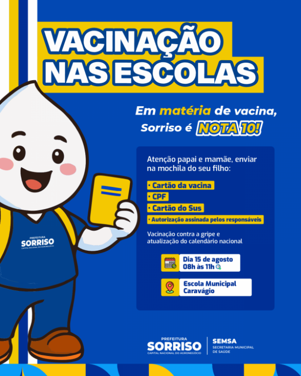 Com o tema “Em matéria de vacina, Sorriso é nota 10!”, a campanha tem percorrido diversas instituições de ensino, levando a imunização para mais perto das famílias e reforçando a importância da prevenção. Para muitos pais, a rotina corrida dificulta a ida às unidades de saúde, e a presença das equipes de vacinação nas escolas tem sido um grande alívio, permitindo que os filhos sejam vacinados sem sair do ambiente escolar.