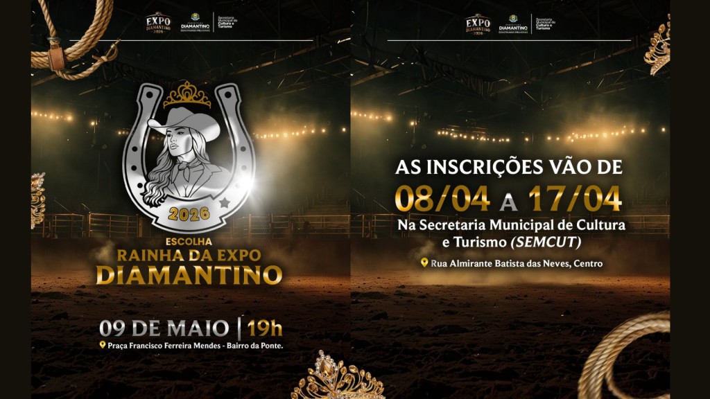 A Prefeitura de Diamantino, por meio da Secretaria Municipal de Cultura e Turismo, está com inscrições abertas para o tradicional concurso de Escolha da Rainha