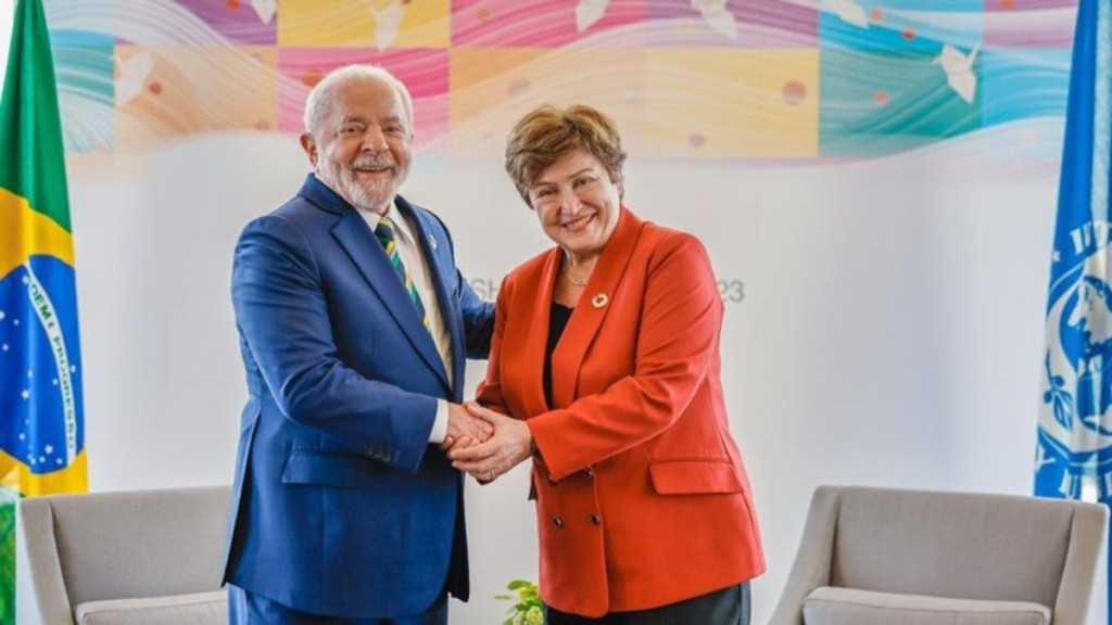 Ricardo Stuckert Presidente Lula conversa com diretora-gerente do FMI na reunião do G7 O presidente Luiz Inácio Lula da Silva (PT) disse neste domingo (21),