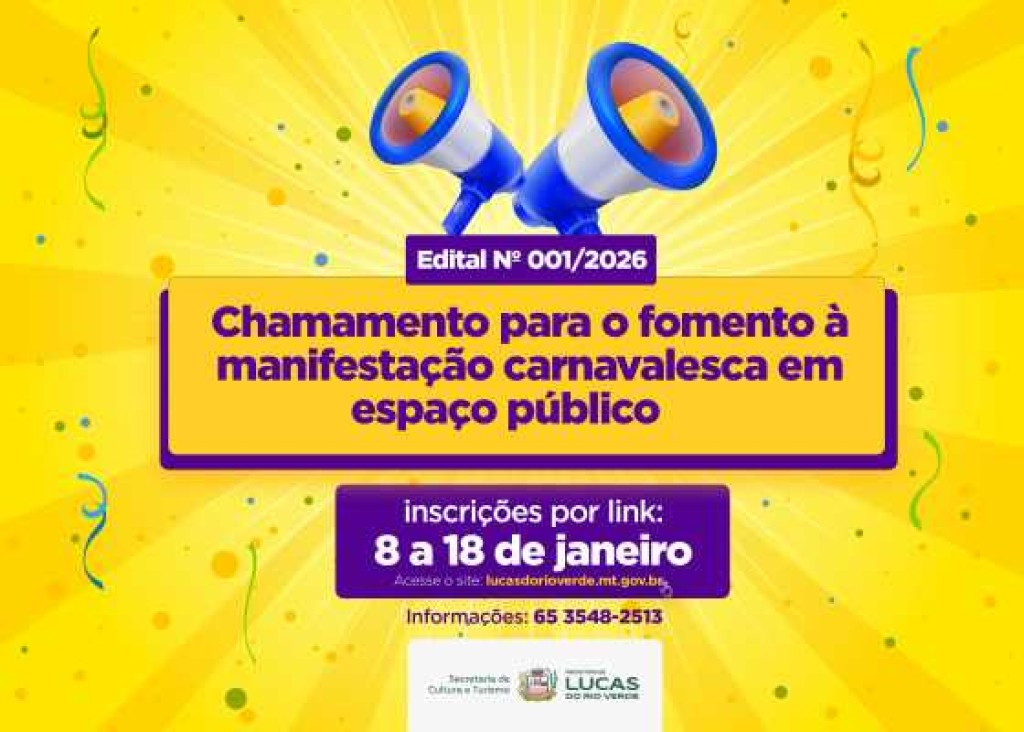 A Secretaria de Cultura e Turismo de Lucas do Rio Verde registrou uma demanda superior a prevista no Edital nº 01/2026, voltado ao apoio às ações carnavalescas realizadas em espaços públicos do município. O resultado evidencia a participação ativa do setor cultural e demonstra o alcance da política pública proposta.