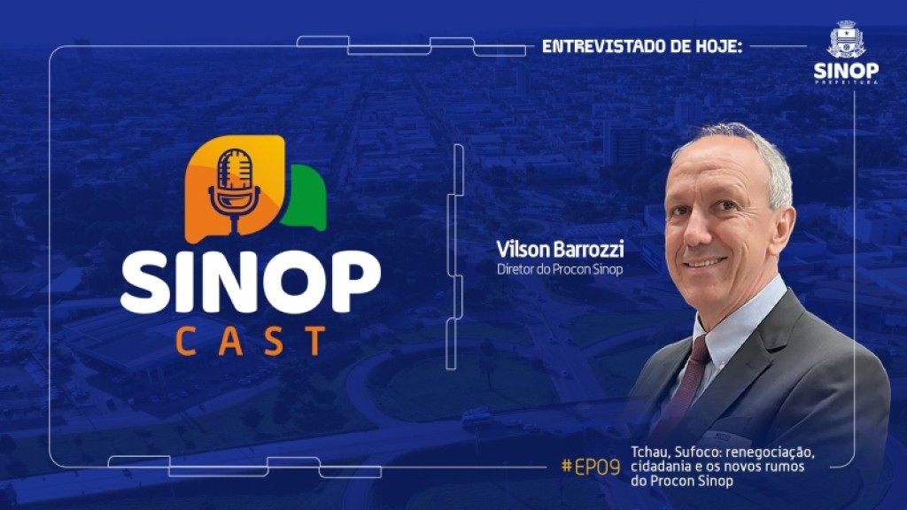 O nono episódio do SinopCast, o podcast oficial da Prefeitura de Sinop, será transmitido nesta sexta-feira (26), às 18h, com a participação especial do diretor do Procon, Vilson Barozzi. O programa vai ao ar nas plataformas digitais da Prefeitura (youtube e facebook) e trará informações importantes sobre os direitos do consumidor e a nova campanha de renegociação de dívidas promovida pelo órgão: “Tchau, Sufoco!”.
