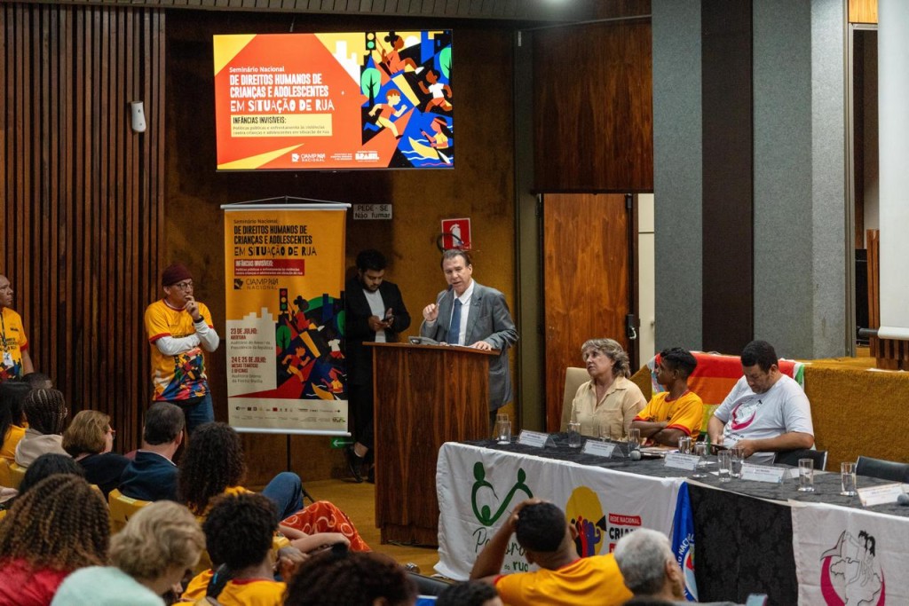 O seminário é promovido pelo Ministério dos Direitos Humanos e da Cidadania (MDHC) e pelo Comitê Intersetorial de Acompanhamento e Monitoramento da Política Nacional para a População em Situação de Rua (CIAMP-Rua Nacional). Com o tema “Infâncias Visíveis: Políticas públicas e enfrentamento às violências contra crianças e adolescentes em situação de rua”, o evento foi idealizado a partir das ações da Comissão Permanente de Criança e Adolescente em Situação de Rua do CIAMP-Rua Nacional.