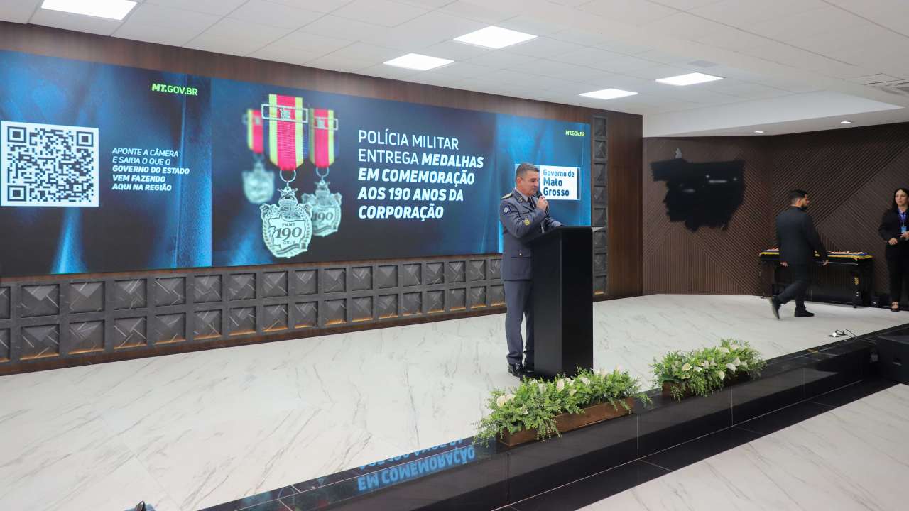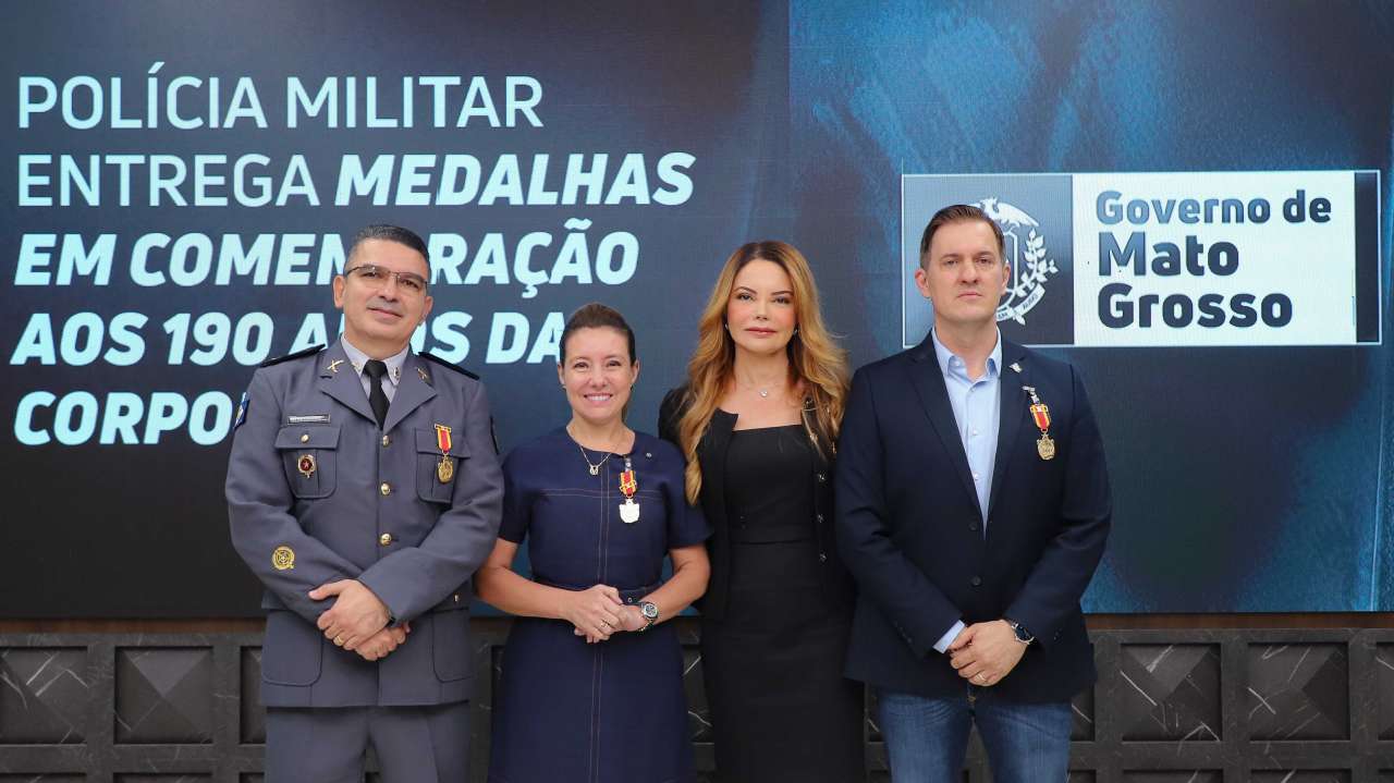 A prefeita de Várzea Grande, Flávia Moretti (PL), foi homenageada, ontem (2), com a honraria especial da “Medalha de 190 Anos da Polícia Militar”, na cerimônia que deu o início às comemorações de 190 anos da instituição, no Palácio Paiaguás. As medalhas foram entregues a personalidades e instituições parceiras que colaboram com a força de segurança ao longo dos quase dois centenários.