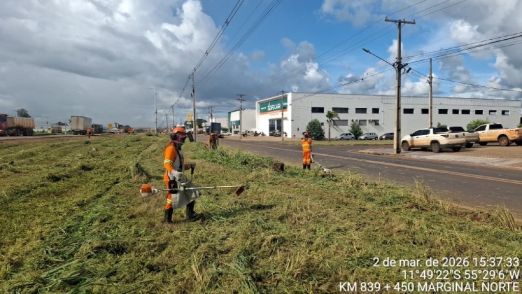 Prefeitura de Sinop cobra e concessionária realiza limpeza das margens da BR-163