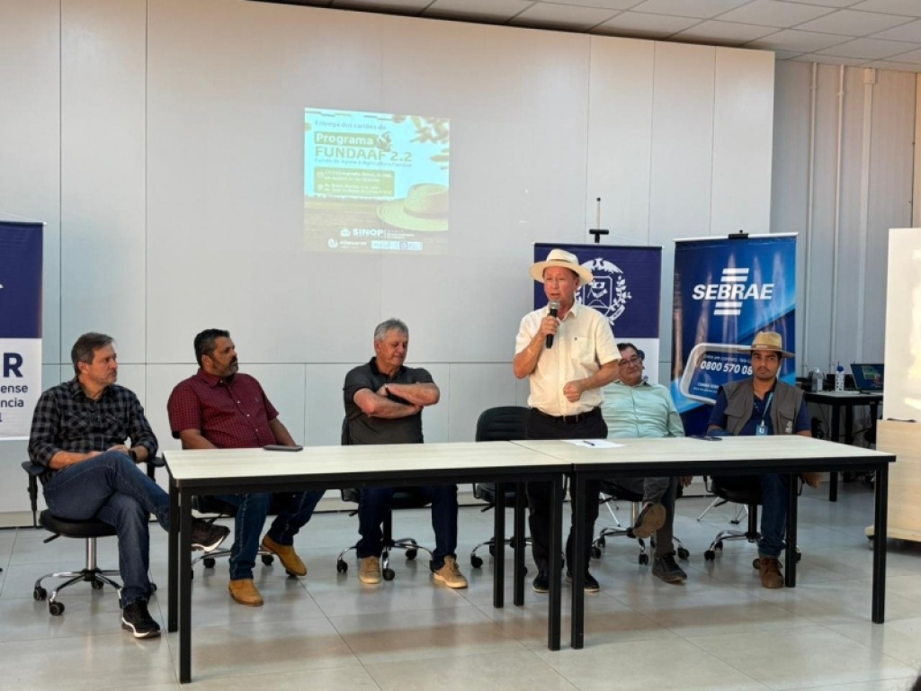 A Prefeitura de Sinop, por meio da Secretaria de Desenvolvimento Econômico (Sedec), em ação conjunta com o Governo do Estado de Mato Grosso, por meio da Empresa Mato-grossense de Pesquisa, Assistência e Extensão Rural (Empaer), promoveu uma cerimônia para entrega dos cartões do Fundaaf 2.2 à 40 famílias de pequenos produtores rurais de Sinop. O evento aconteceu ontem (17), à tarde, no auditório do Sebrae (Serviço Brasileiro de Apoio às Micro e Pequenas Empresas).