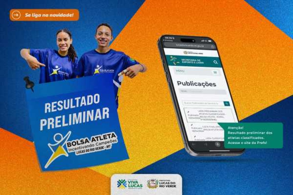A Prefeitura de Lucas do Rio Verde informa que já está disponível, a partir desta quarta-feira (02), a lista preliminar dos aprovados no Bolsa Atleta “Incentivando Campeões”, edição 2025. Conforme o Edital Nº 01/2025, a lista final dos atletas aprovados será divulgada no dia 04 de abril (sexta-feira).