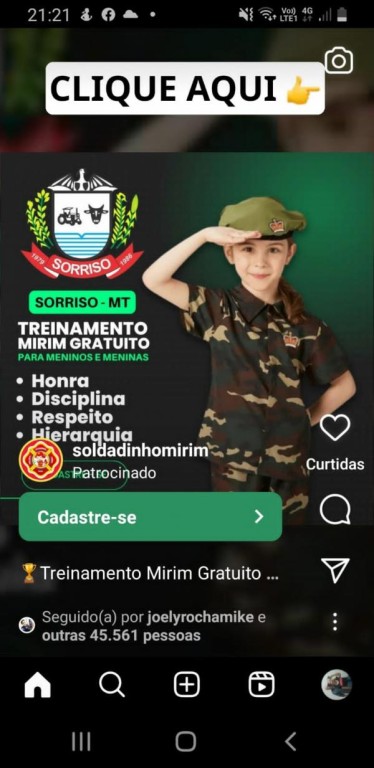 A Prefeitura de Sorriso informa que não tem envolvimento com o “Treinamento Mirim Gratuito para meninos e meninas – Soldadinho Mirim”.