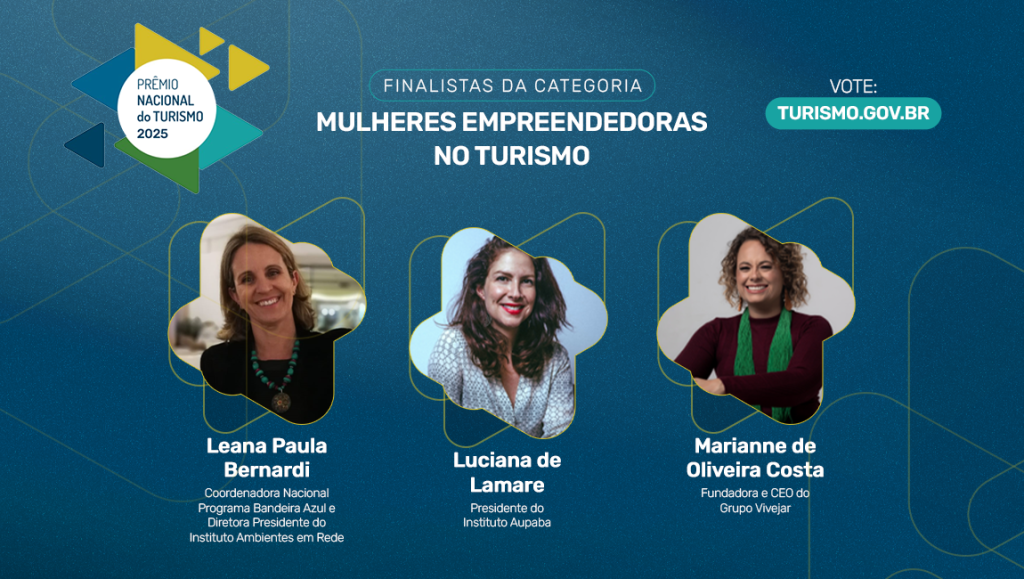 SAIBA COMO VOTAR – Acesse premionacional.turismo.gov.br, escolha seu finalista de cada categoria, informe seu e-mail e confirme a validação enviada para sua caixa de entrada. Seu voto está registrado!