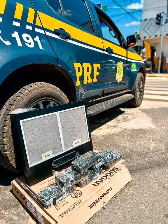 Durante a fiscalização, os agentes identificaram indícios que levaram à verificação mais detalhada da bagagem de uma passageira. Na inspeção, foi encontrado um depurador de ar SUGGAR contendo aproximadamente 6,7 kg de substância análoga à pasta base de cocaína, divididos em seis tabletes.