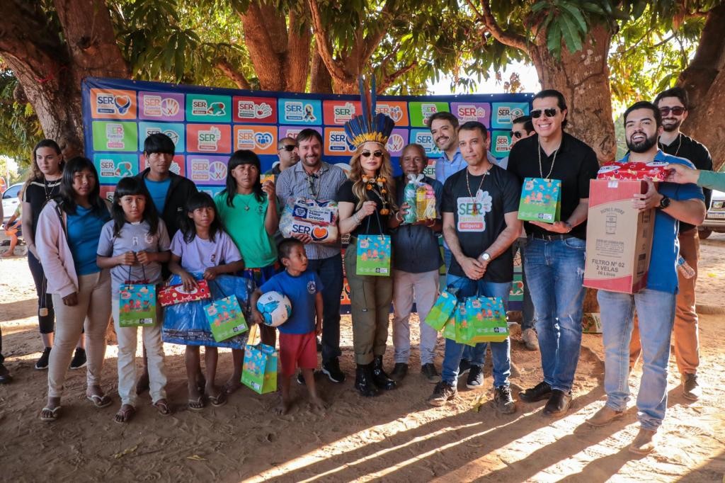A primeira-dama de Mato Grosso, Virginia Mendes, e o secretário de Estado de Assistência Social e Cidadania, Klebson Haagsma, participaram nesta quarta-feira (16.7) de uma ação do programa SER Família Solidário na Aldeia Santa Clara, situada na Terra Indígena Parabubure, em Campinápolis.