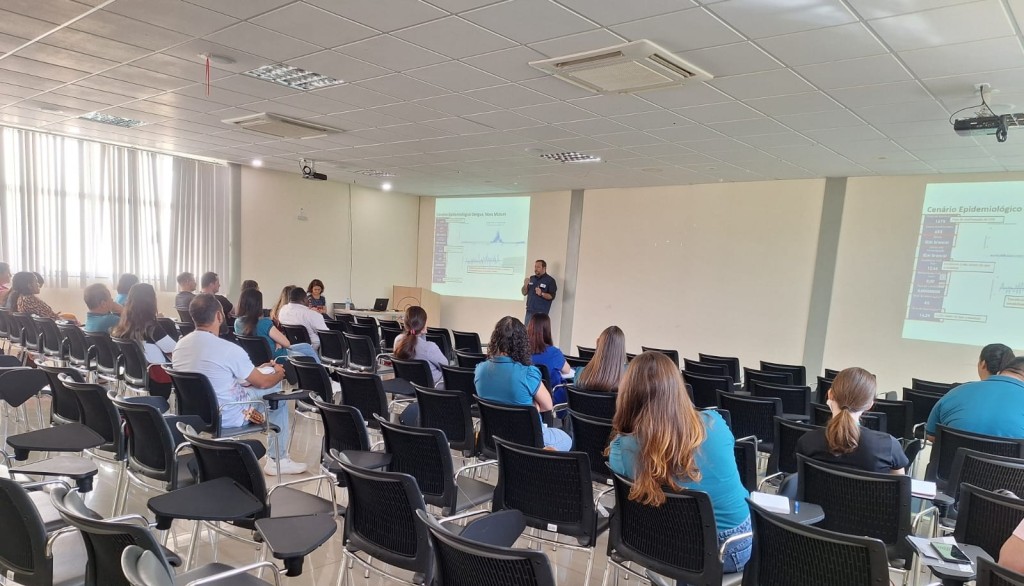 A Secretaria de Estado de Saúde (SES), por meio do Centro de Informações Estratégicas em Vigilância em Saúde do Estado de Mato Grosso (Cievs), capacitou cerca de 100 profissionais da Atenção Primária à Saúde de Nova Mutum, nesta segunda e terça-feira (26 e 27.5), para o correto manejo clínico e análise de risco das arboviroses e de vírus respiratórios.
