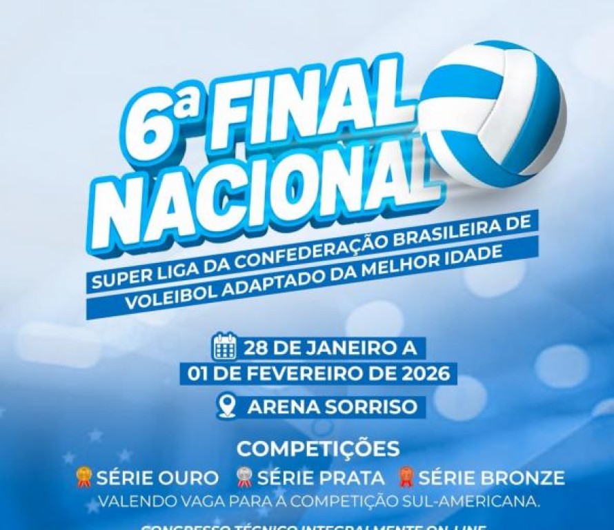 Sorriso será sede da 6ª Final Nacional da Superliga da Confederação Brasileira de Voleibol Adaptado da Melhor Idade (CBVA), no período de 28 de janeiro a 1º de fevereiro. As competições serão realizadas na Arena Sorriso.
