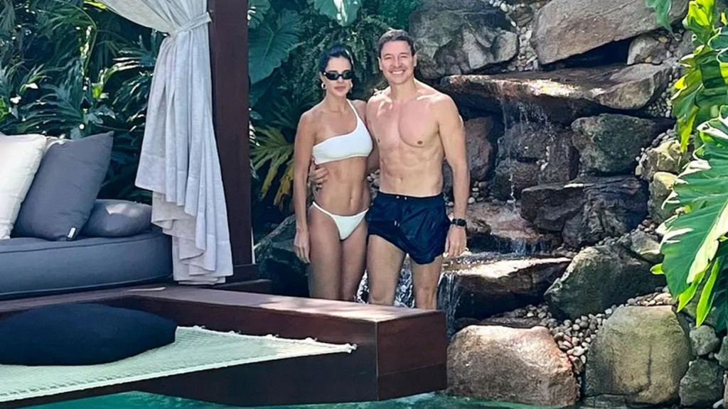 Vera Viel, 50, aproveitou a sexta-feira (21) ao lado do marido, Rodrigo Faro, em sua mansão em Alphaville. A modelo apareceu de biquíni nos stories do Instagram e mostrou momentos de lazer na piscina que simula uma ilha artificial, além de registrar um beijo carinhoso com o apresentador, de 52 anos.